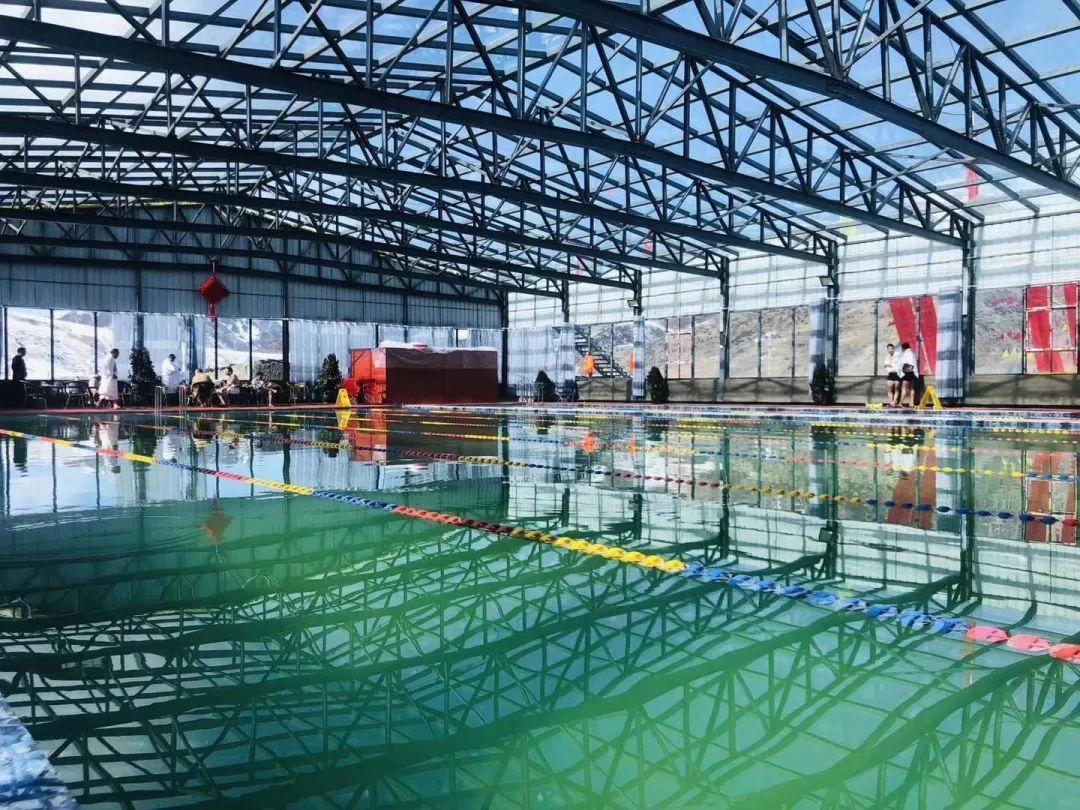 酒店西面建有室內溫泉游泳館,游泳館建設面積2668㎡,館內游泳池按照國家標準尺寸建設(50m*25m),可同時容納200人。酒店依托國家4A級唐蕃古道文化旅游景區,客源資源豐富,酒店周邊有風情商業街、帳篷營地等游玩配套設施。