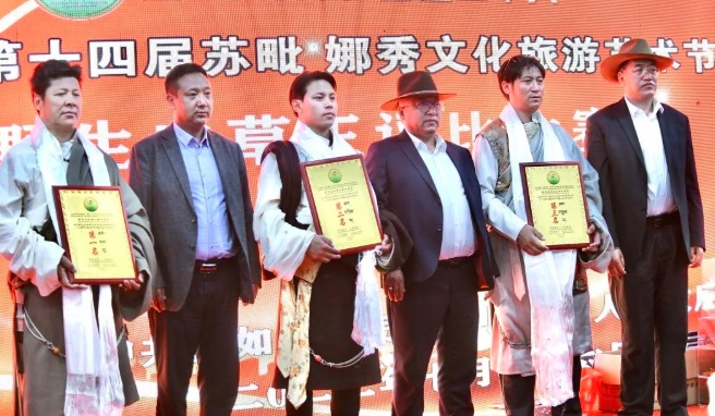 經過評比,茶曲鄉茶久的蟲草以整體質量最佳獲得蟲草鮮草單斤第一名,第二名和第三名則是來自茶曲鄉的曲嘎和夏曲鎮的羅杰;獲得蟲草陳草單斤第一名的是來自達塘鄉的貢嘎,達塘鄉的索朗達杰榮獲第二名,茶曲鄉的措白為第三名,出席領導為獲獎選手頒獎。