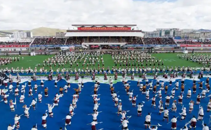 60年來,在黨中央親切關懷、西藏自治區黨委堅強領導及對口支援省市和企業無私援助下,那曲各項事業取得全方位進步與歷史性成就。開幕式文藝演出以“馬”文化為核心,分三大篇章展開,四川、青海等地馬術表演隊與本地隊伍共展精湛技藝;千人共舞《禮贊甲子》、器樂合奏《風從浙江來·樂在那曲揚》等節目,生動呈現西藏自治區成立60年輝煌成就與對口支援成果。