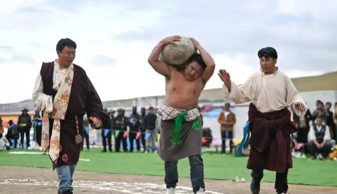 圖為那曲恰青賽馬節抱石頭比賽現場。 貢嘎來松 攝
